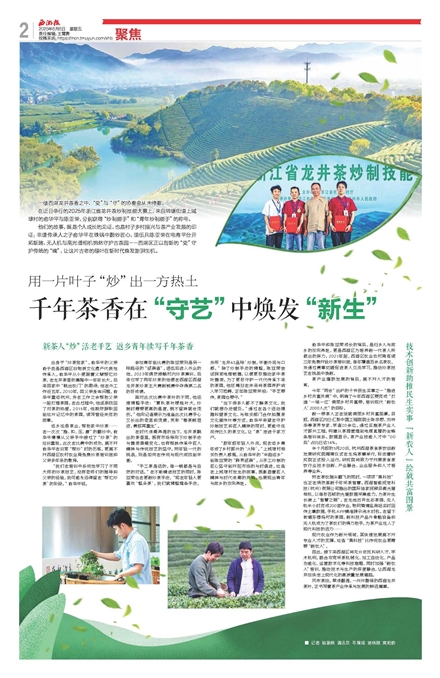 他们的故事,既是个人成长的见证,也是村子乡村振兴与茶产业发展的印证:非遗传承人之子俞华平在铁锅中翻炒匠心,退伍兵陈亚荣在电商平台开拓新路,无人机与高光谱相机悄然守护古茶园……西湖区正以创新的“变”守护传统的“魂”,让这片古老的绿叶在新时代焕发澎湃生机。