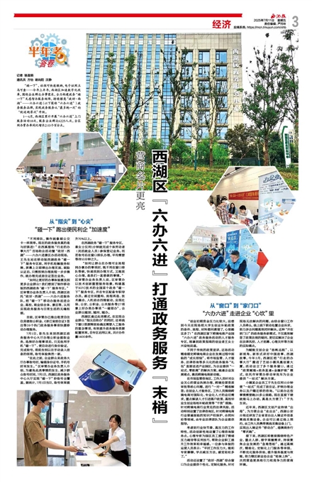 1—6月,西湖区累计开展“六办六进”上门服务活动18次,服务企业群众6225人次,全区网办掌办率同比增长2.03个百分点。