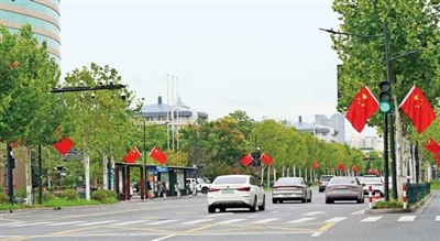 国庆中秋佳节临近,大街小巷早已披上节日的盛装。在西湖区的各大交通主要干道上,一面面鲜艳的五星红旗高高挂起、迎风飘扬,在秋日晴空下连成一片红色的海洋,喜庆而热烈,营造出浓浓的爱国情怀和欢庆氛围。