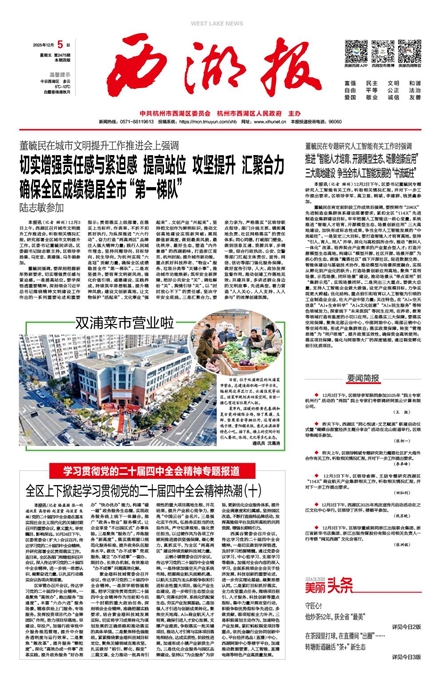 2025年12月5日 星期五 第2475期 本期四版 温馨提示 今日西湖区 多云5℃-13℃白露垂珠滴秋月