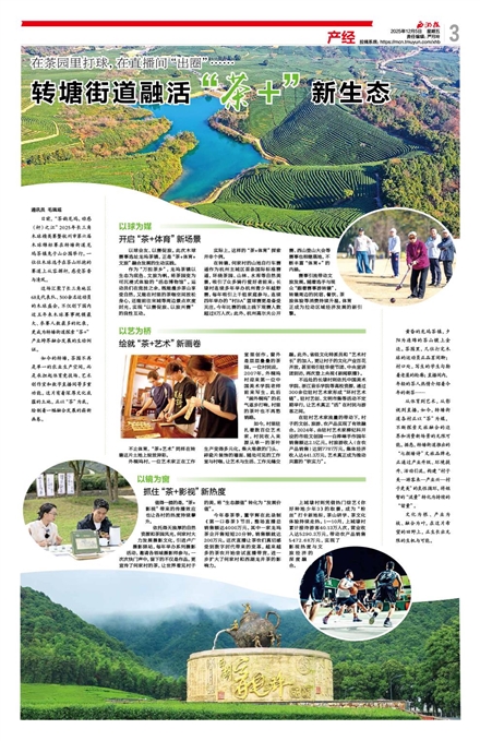如今的转塘,茶园不再是单一的农业生产空间,而是承担起体育竞技场、艺术创作室和数字直播间等多重功能。这片有着深厚文化底蕴的土地,正以“茶”为底,绘制着一幅融合发展的崭新画卷。