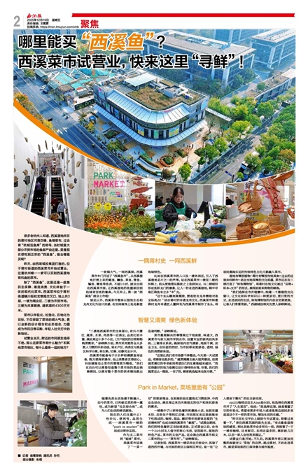 除了“西溪鱼”,这里还是一座集民生保障、潮流消费、文化体验于一体的现代化菜市。西溪菜市位于蒋村街道晴川街和龙章路交叉口,地上共3层,一楼为商业区,二楼为农贸市场,三楼为共享厨房,建筑面积4300平方米。