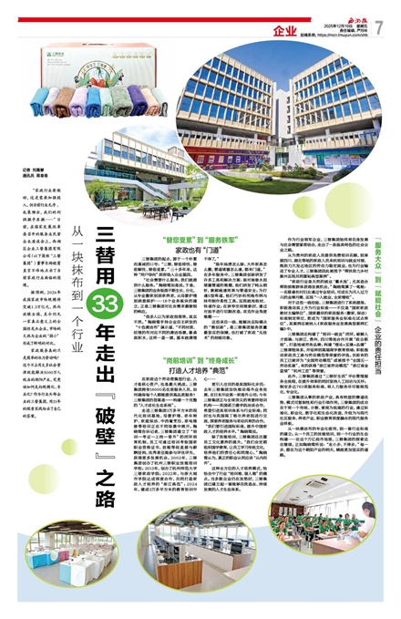 从一块清洁布的专业化使用,到一套行业标准的建立;从一个员工的技能培训,到一个行业的生态构建……在这个万亿级市场里,三替集团的探索还在继续。正如陶晓莺所说:“走小步,不停步。”每一步,都在为这个朝阳产业的明天,铺就更加坚实的道路。