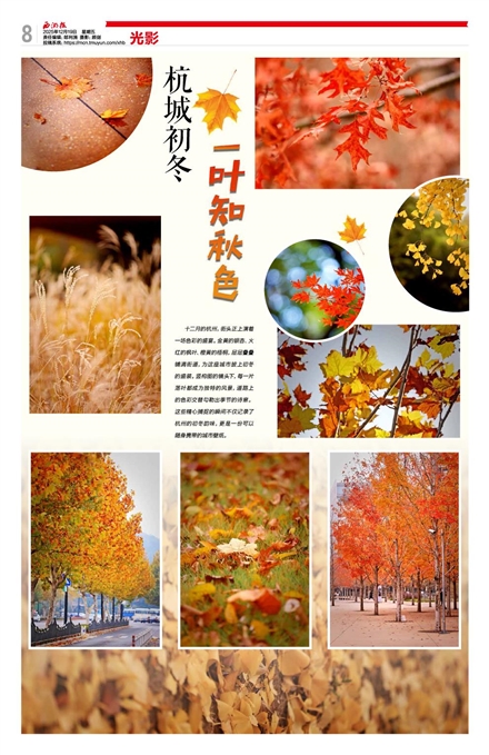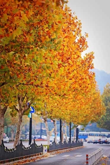 十二月的杭州,街头正上演着一场色彩的盛宴。金黄的银杏、火红的枫叶、橙黄的梧桐,层层叠叠铺满街道,为这座城市披上初冬的盛装。竖构图的镜头下,每一片落叶都成为独特的风景,道路上的色彩交替勾勒出季节的诗意。这些精心捕捉的瞬间不仅记录了杭州的初冬韵味,更是一份可以随身携带的城市壁纸。