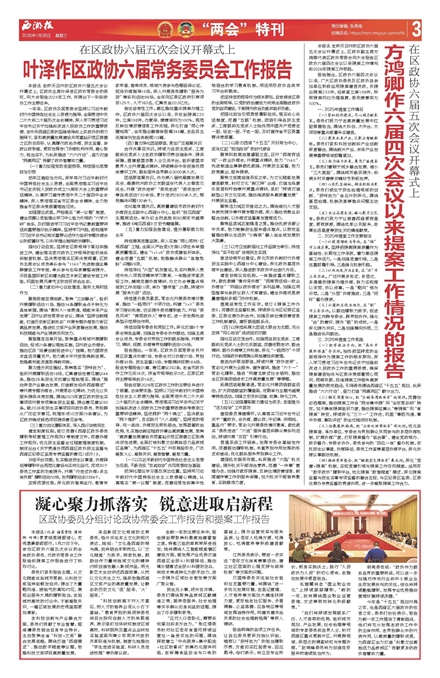本报讯(记者 诸葛曾晓 蒲鸿刚 何烨)累累硕果提振信心,宏伟愿景砥砺前行。1月27日下午,参加区政协六届五次会议的全体政协委员,对政协常委会工作报告和提案工作报告进行了热烈讨论。