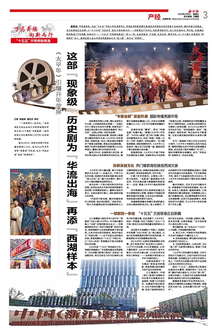 “一部剧带火一段历史。”由西湖区文创企业浙江华策影视股份有限公司(以下简称“华策集团”)制作的重大历史题材剧《太平年》正在持续热播。