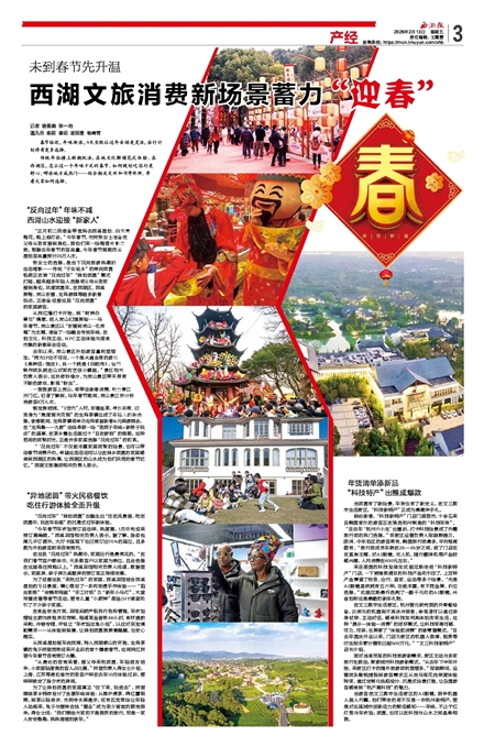传统年俗撞上新潮玩法,在地文化解锁花式体验。在西湖区,怎么过一个年味十足的春节、如何规划吃住行更舒心、哪些地方成热门……结合相关文旅和消费数据,看看大家如何选择。
