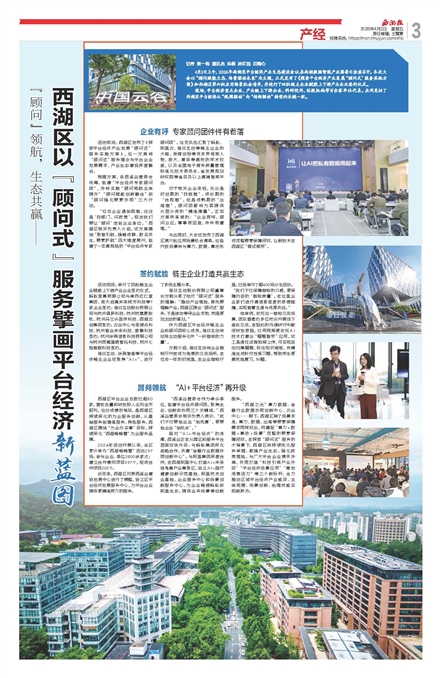 “西湖之光”算力联盟、金融行业数据协同创新中心、云谷中心……眼下,西湖区除了场景本身,算力、数据、出海等要素保障需求同样突出,构建起“算力+数据+算法+场景”完整的要素保障闭环。在探索“顾问式”服务的大背景下,西湖区将持续优化服务举措、做强产业生态、强化政策落地。与广大平合企业携手并肩,共同打造“科技引领产业升级”“平台经济场景应用”“激发消费活力”等三个新标杆,全力推动区域平台经济产业能级、主体规模、场景创新、治理效能实现新跃升。