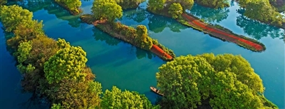 “四方周围八百里,周回港汊数千条。”是《水浒传》对梁山水泊的描写,也恰恰是西溪湿地典型的水域特点。在西溪湿地,河流纵横交汇,其间分布着众多的港汊和鱼鳞状鱼塘,形成了西溪独特的湿地景致。