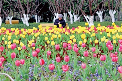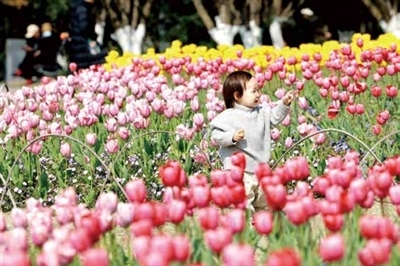 步入园中,成片的郁金香铺陈开来,游人穿梭于蜿蜒的绿道之间。“最近天气好,我特意带着宠物过来逛逛。这里不像太子湾那么拥挤,看到这些花,我的心情也变好了。”从其他城区专程赶来的朱女士笑着说。